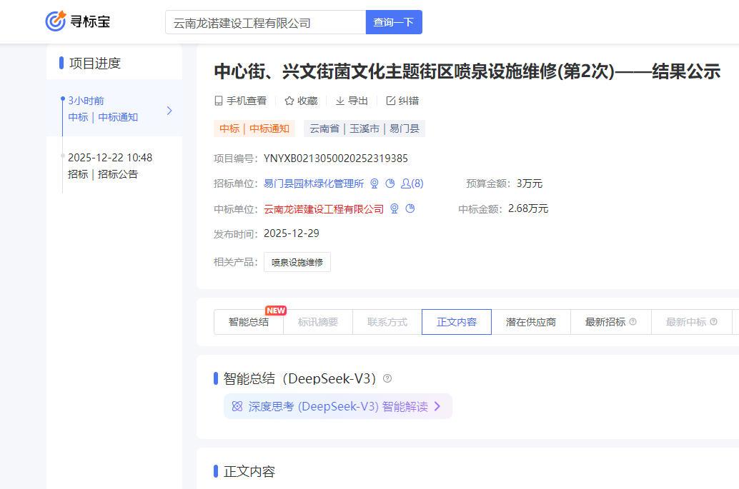 喜訊《云南龍諾建設工程有限公司中標公告》